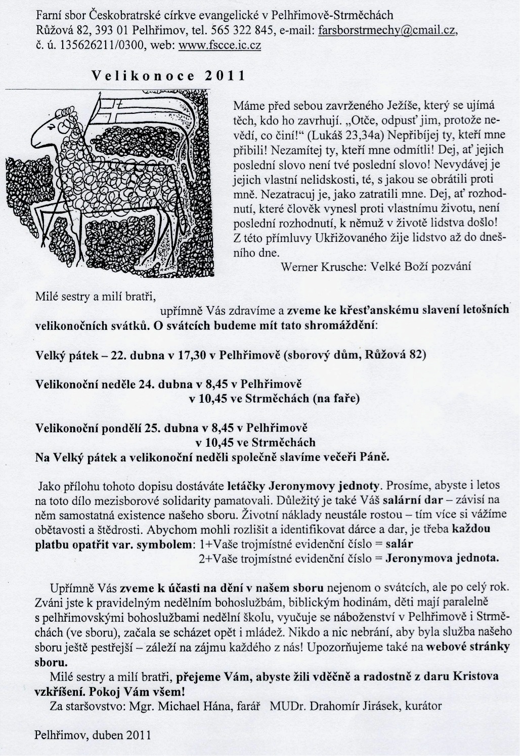letáčky Jeronymovy jednoty a složenku na letošní dar.